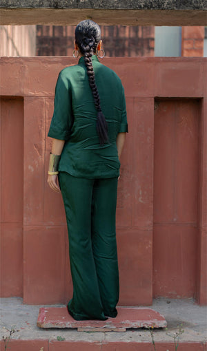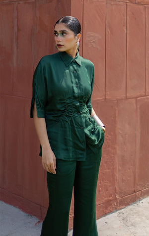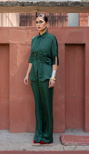 wide leg , high waist silhouette, made purely from viscose satin and fully lined with side pockets