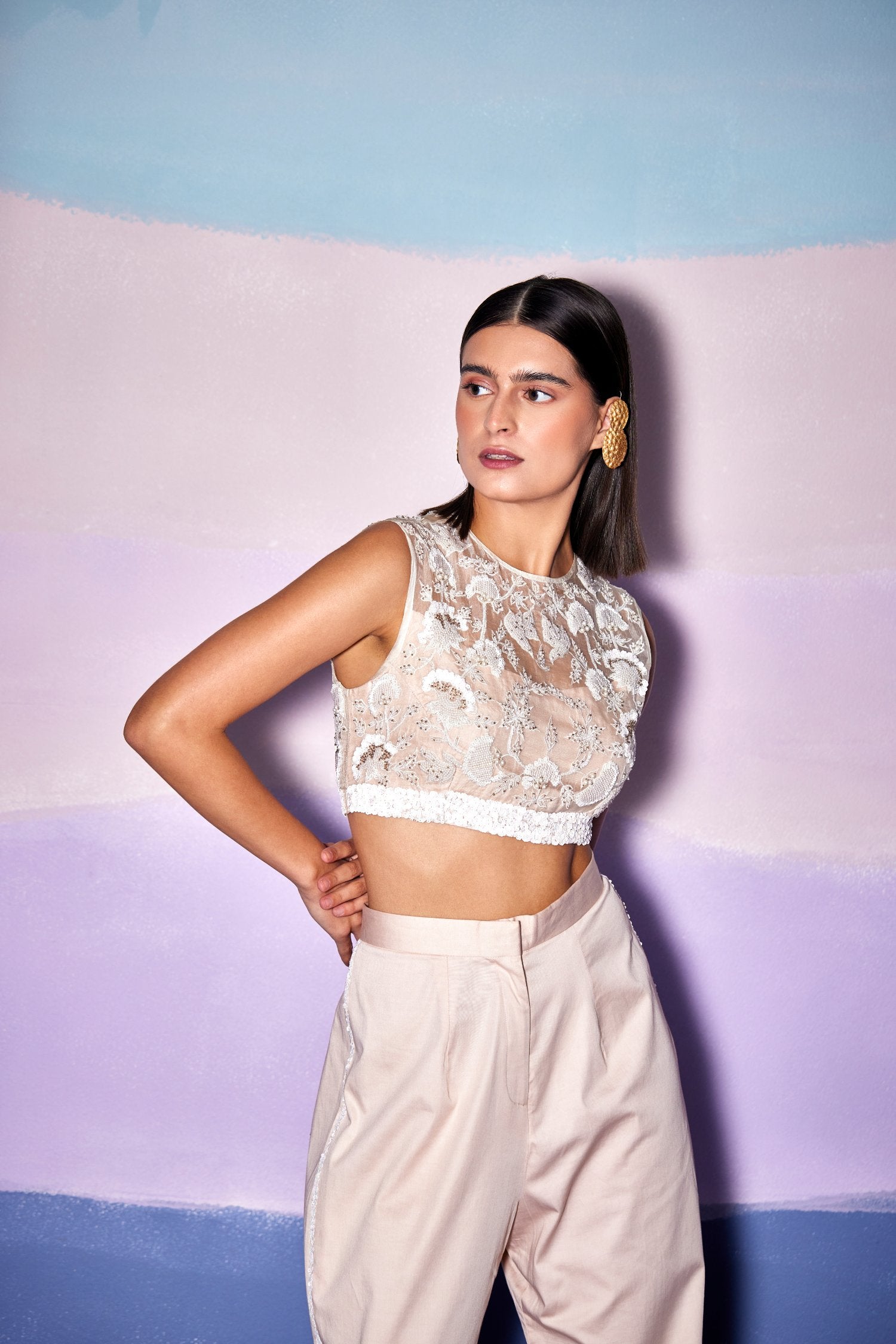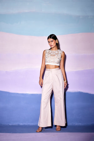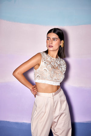White Organza Floral - W Crop Top