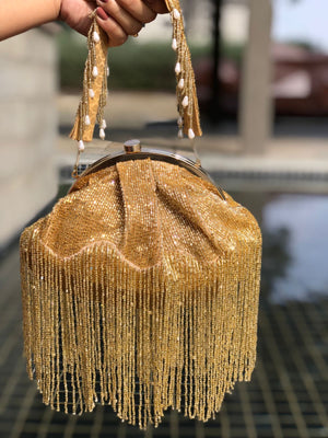 Material: Crystal heavy half frame soft pouch with metallic clasp closure
