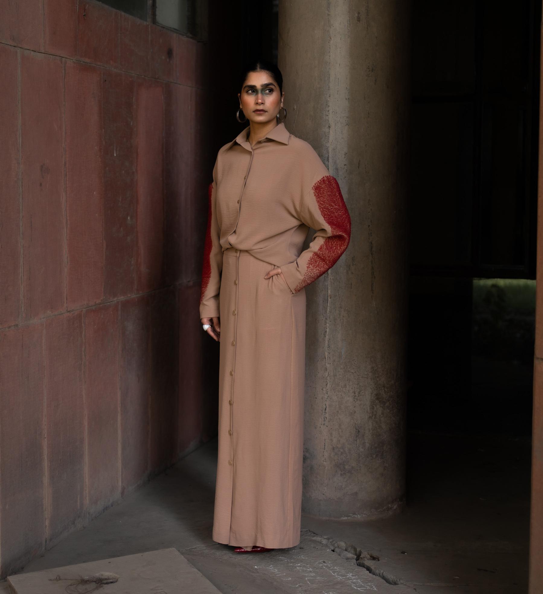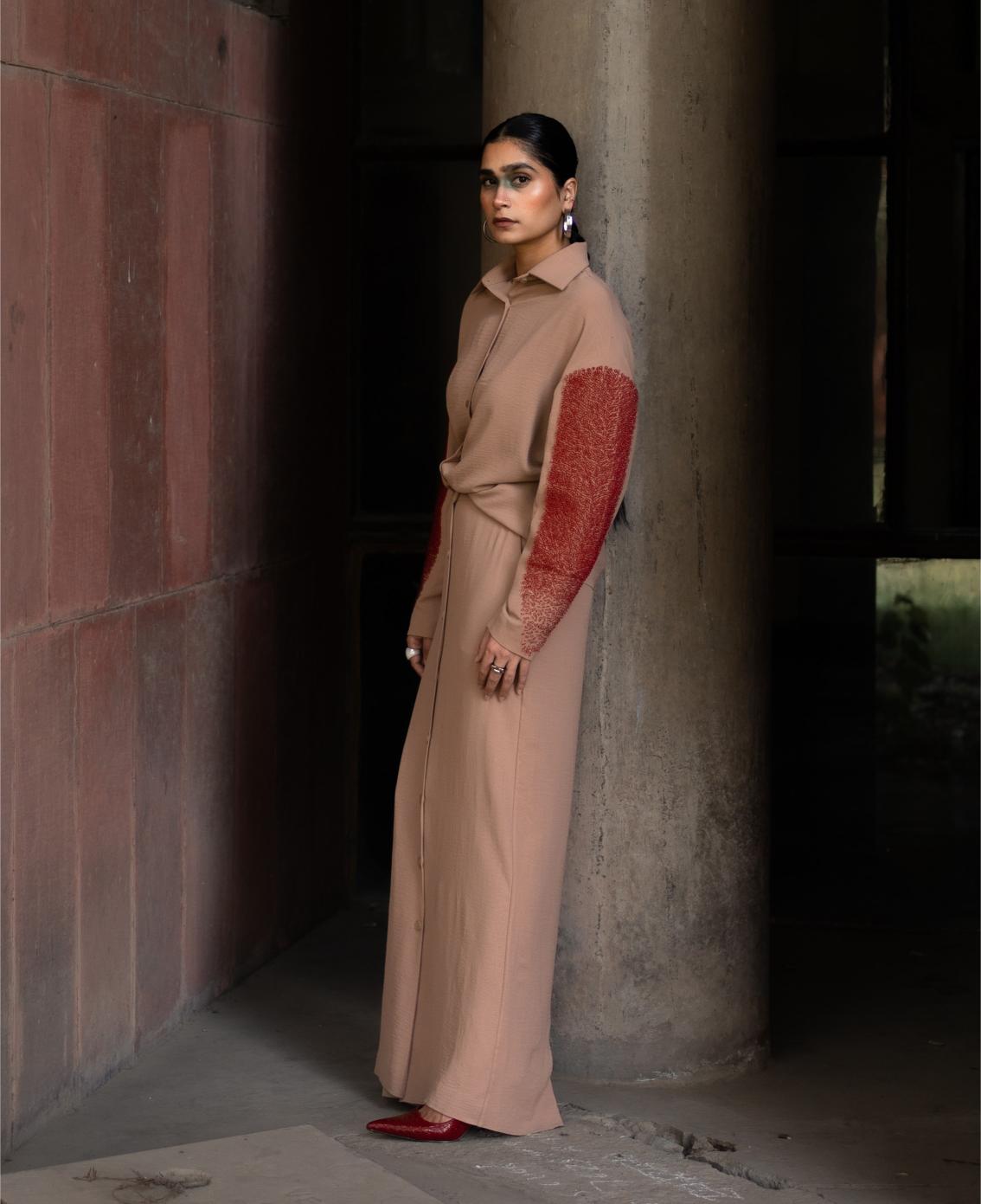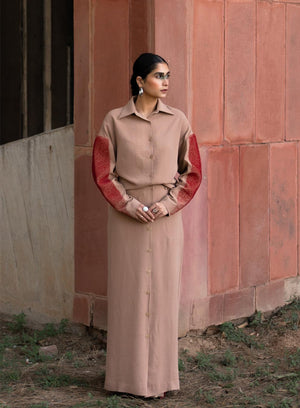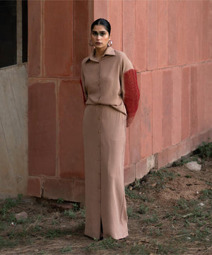 The Front Button-Up trousers, are convertible to an A-line skirt with front button closure and have belt loops at the waist band