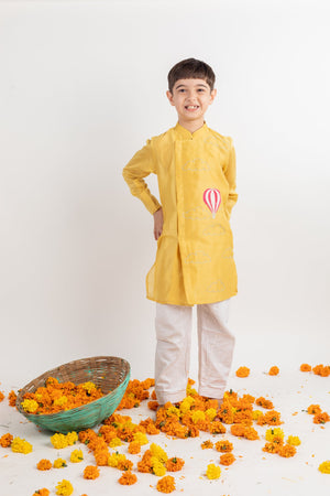Mustard Yellow Balloon Motif Embroidered Kurta And Pyjama Set