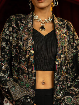 Embroidered Stylised Jacket with Pant & Bustier