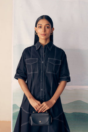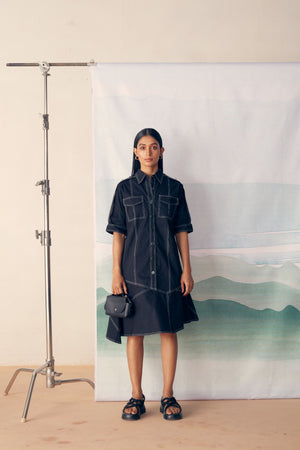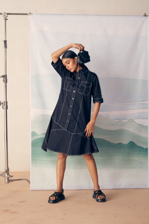 Black Premium Stretch Cotton With Thread Detailing Dress
