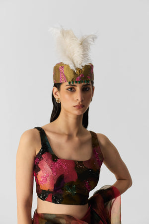 Hand-embroidered with sequins on the front, it exudes richness and sophistication. The back is designed with hooks and a tie-up detail, ensuring a perfect and comfortable fit. Ideal for elevating your festive look.
