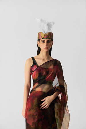 The blouse is crafted in the Furong print in cotton silk fabric.