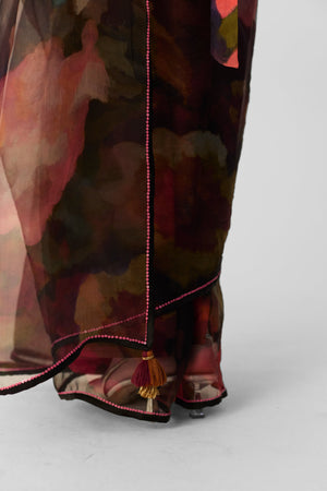 This saree is a true masterpiece of craftsmanship, expertly crafted from pure organza.