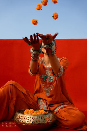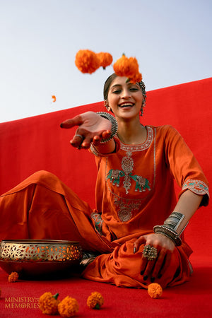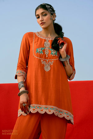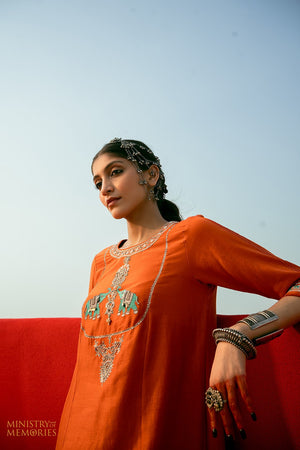 Aline Short Kurat With Tulip Dhoti And A Detailed Thread , Zari Embroidery With Indian Motifs