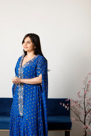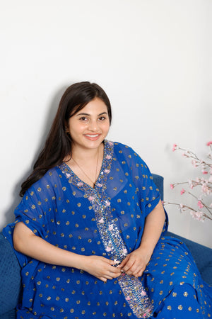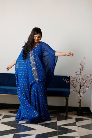Georgette Embroidered Kaftan With Hand Embroidered Neck Line Paired With Sharara