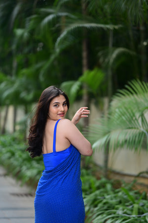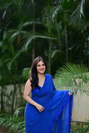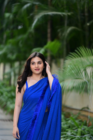 Drapeed Lycra Fitted Blouse With Pre Draped Cut Dana Saree With Hand Made Tassel