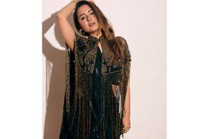 This cape absolutely knows how to capture a a fiercely elegant spirit and spread across sizzles & dazzles in every room you walk into. Elegant, Statement & trust form of art. The fabric has a slight stretch to be able to easily sit well on the shoulder along with a soft lining on neckline for added comfort & ease of wear. Hook button can be worn as a front open styled cape or back open style as it is a versatile look that can be worn with sari, pants, shorts, lehengas etc.