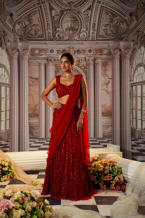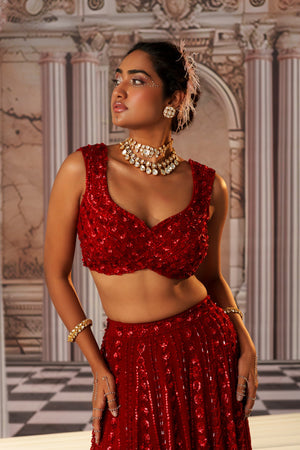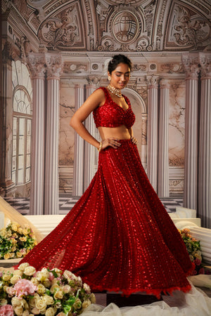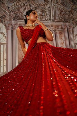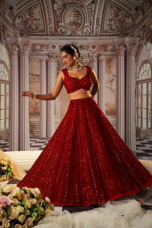 This Gorgeous Red Colour Pretty Lehenga Is Fully Embroidered Skirt.The Blouse Is Padded And Have Embroidery .Beads And Sequins Have Well Defined The Design .The Outfit Finishes With The Dupatta