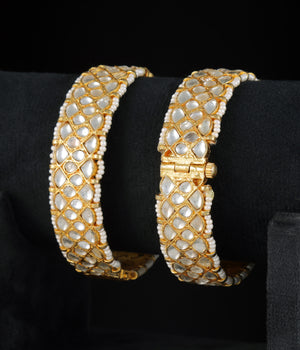 Gold finish kundan bangles (set of 2)