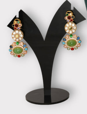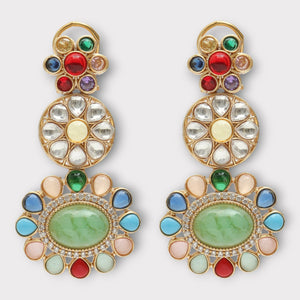 Gold Finish Kundan Polki Dangler Earrings