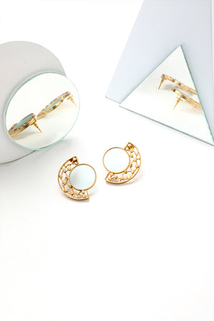 Gold Toned Circular Cyan Acrylic Studs With Dotted Arc