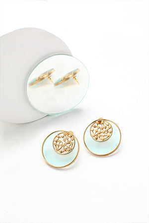 Gold Toned Cyan Acrylic Tangent Studs With Inlaid Dotted Circles