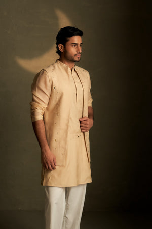 Golden Beige Long Kurta Set with Long Jacket