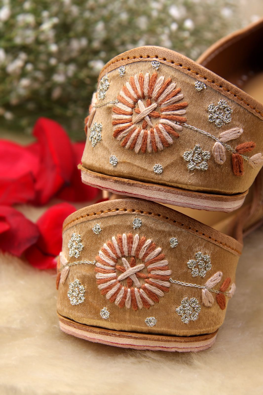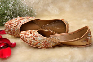 Featuring intricate thread work in soothing peach tones that adds a touch of elegance to every step.