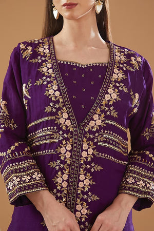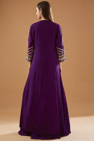 Purple Gather Gown with Embroidered Front Open Jacket .
