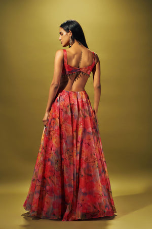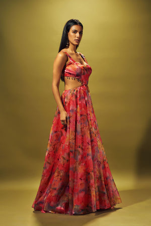 Multi color gown in liquid organza with side cuts