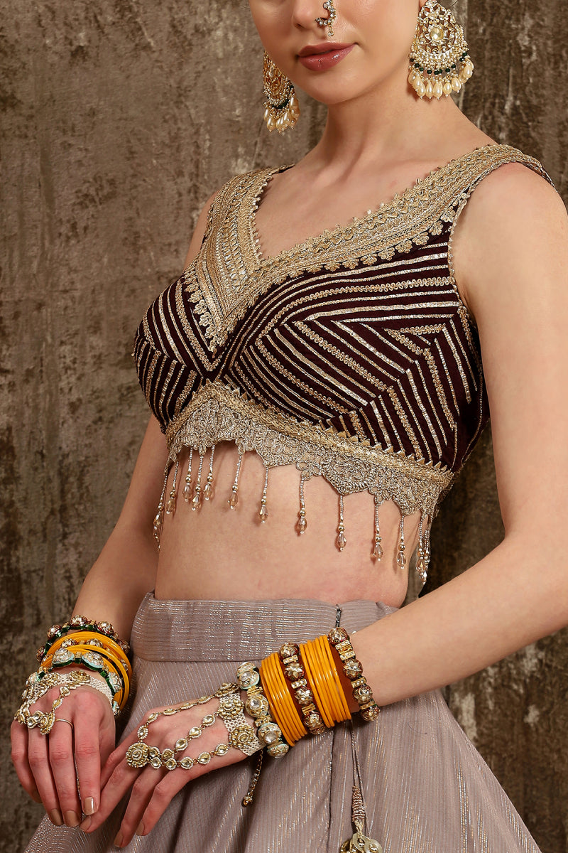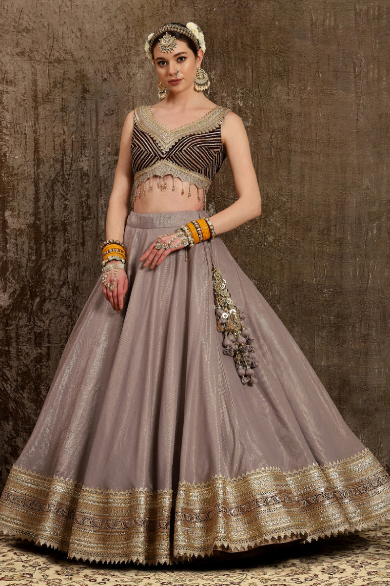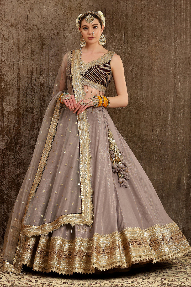 This Lehenga Has A Fine Gota And Dori Embroidery. Lehenga Has A Net Dupatta. This Entire Ensemble Is Exquisite In Itself Because Of Its Color And The Beautiful Embroidery Which Make It A Perfect Choice For Both Day And Night Gatherings.