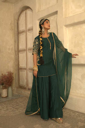 Beautifully crafted sharara set with cohesive and balanced embroidery all over, enhanced by delicate handwork - perfect for festive elegance.