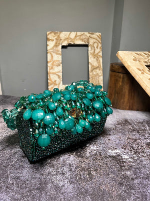 Emerald green bag is made from supple crystals to a sculpted silhouette that echoes the label's meticulous craftsmanship.