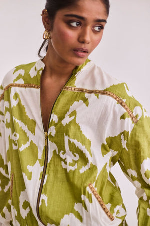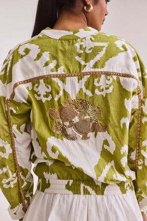 Full Sleeves With Embroidery Piping And Elasticated Cuffs.