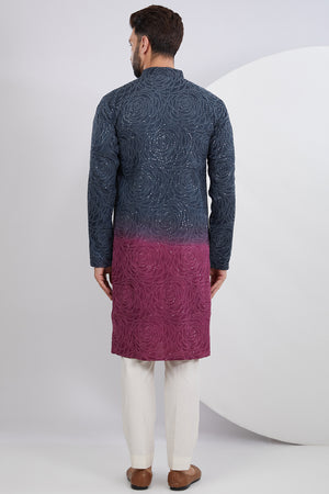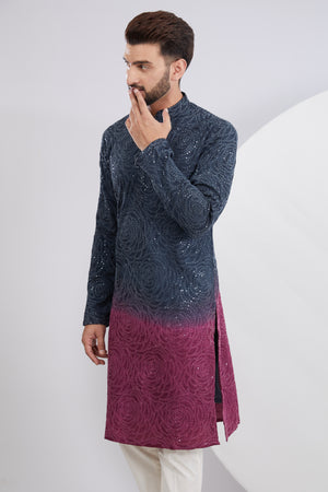 Grey/Pink Ombre Kurta with intricate Thread and Sequins Work