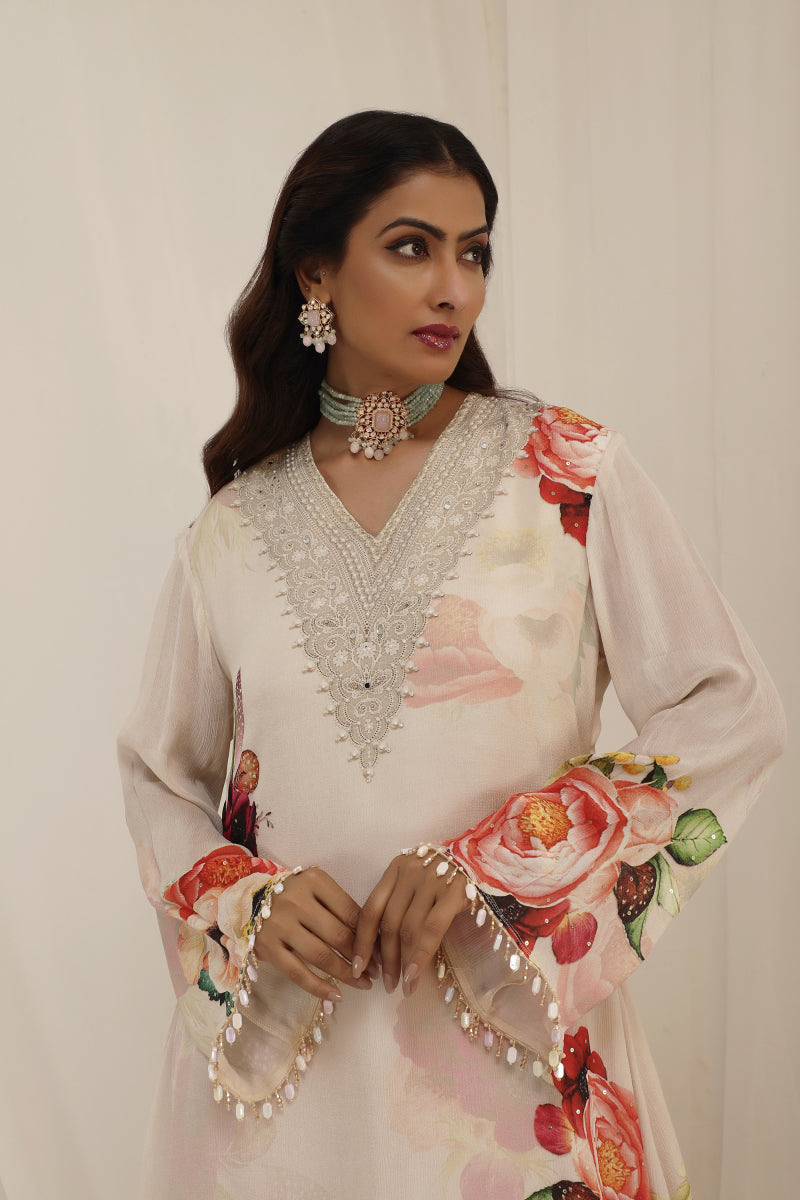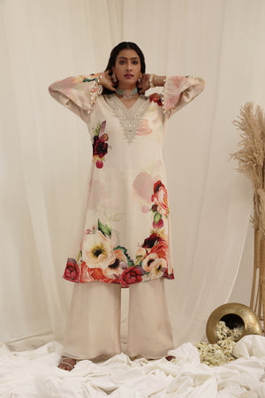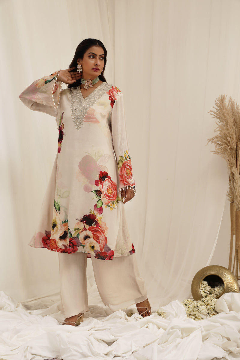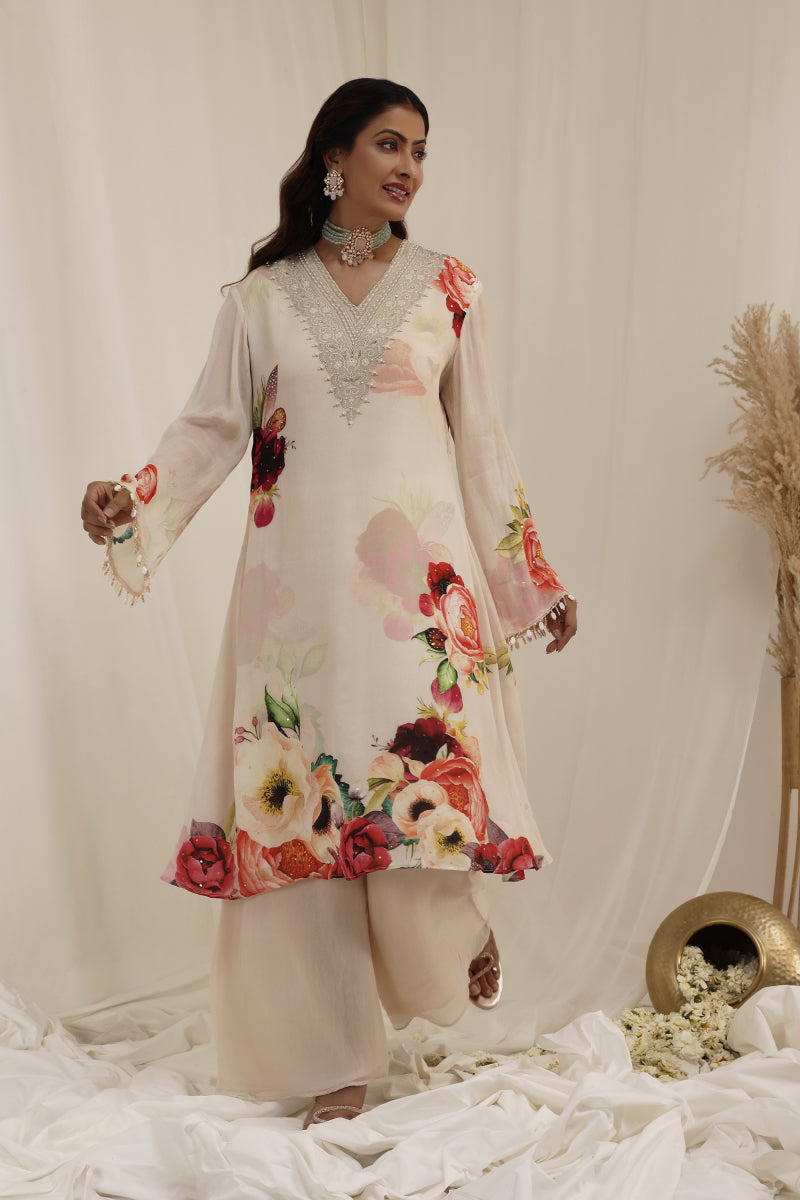 Gul Dasta A-line Kurta set has a essence of summer garden.