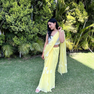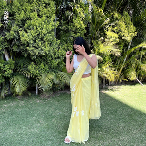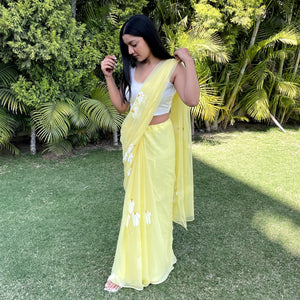 Half-Daisies Chiffon Saree In Yellow