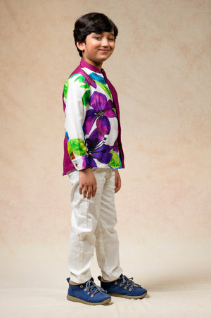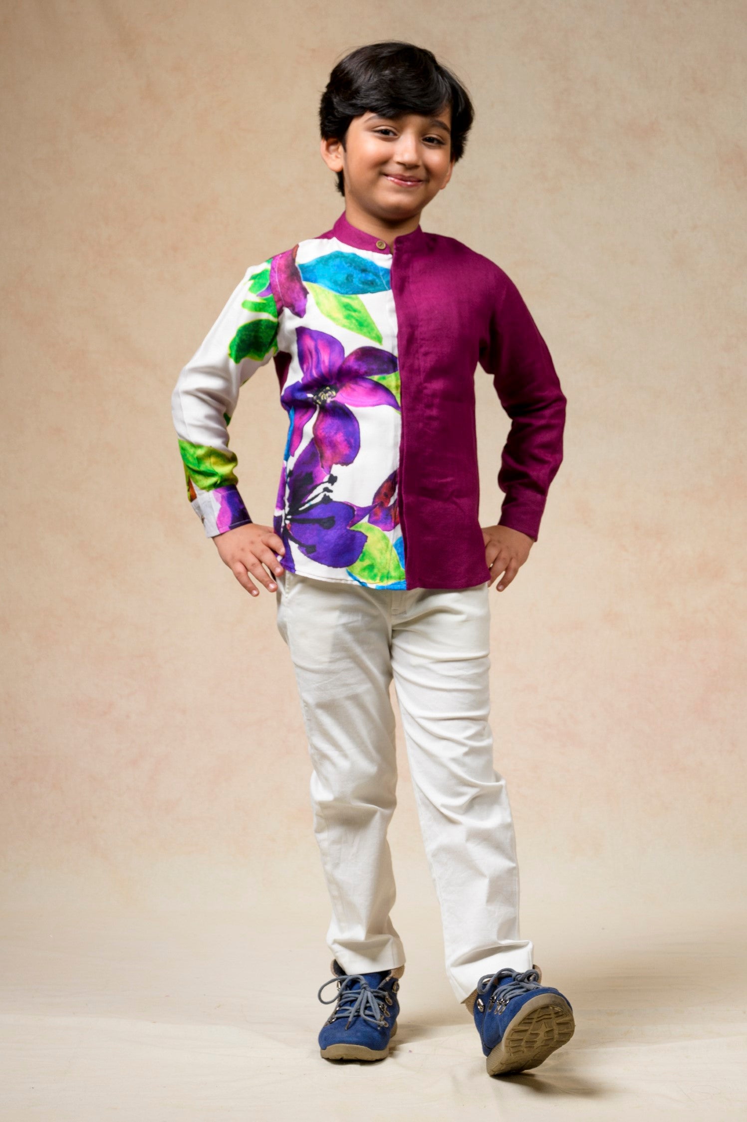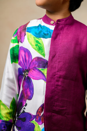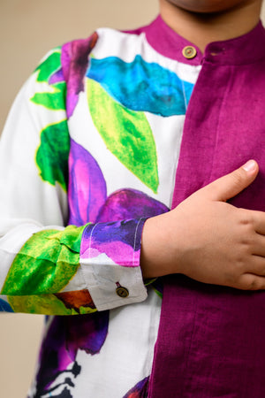 Half printed panel shirt in rich colors