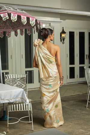 Handwoven Beige Soft Silk Polka Dots Meenaakri Abtsact Banarasi Saree