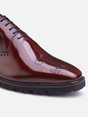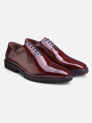 Hats Off Accessories Luxe Patent Genuine Leather Burgundy Oxford With Light Weight Flexible Sole
