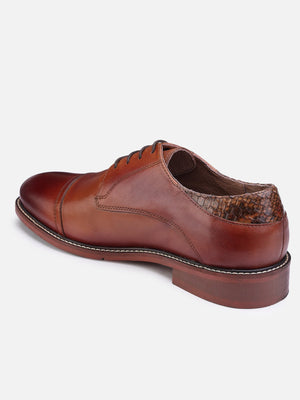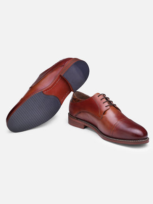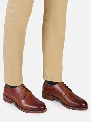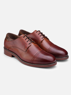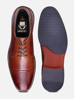 Stylish Elegance: Elevate your formal attire with the Hats Off Accessories Men's Genuine leather Tan Semi Formal Shoes, featuring a sophisticated lace-up design that adds a touch of class to any outfit. Comfort at Every Step: With a soft cushioned footpad, these shoes offer exceptional comfort even during long hours, making them perfect for office wear or special occasions. Durable Design: The TPR and TUNIT sole not only offers reliable traction and durability but also ensures a comfortable walking experience. Additionally, the meticulous detailing on the shoes adds an extra element of sophistication to your look.