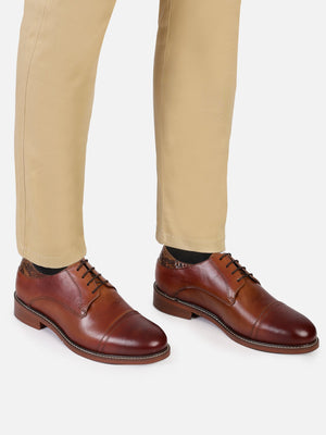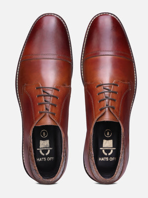 Hats Off Accessories Luxe Tan Burnish Genuine Leather Tan Derby For Men