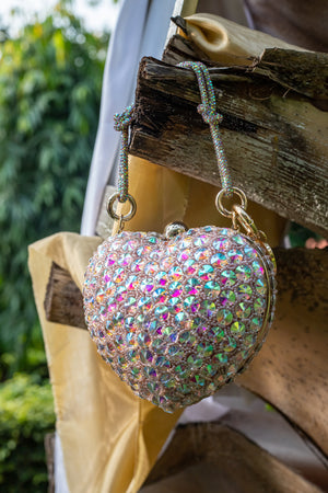 Our heart shape bag is a combination of fine craftsmanship and glamor. Its semi-precious stones make it an instant hit to pair with traditional and contemporary styles.