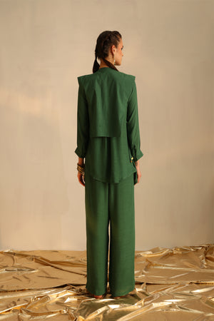 Heart shirt with a panel waistcoat embellished with golden metallic embroidery paired with a palazzo pant