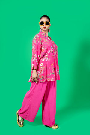 Panels Top With Multi Work And Full Elastic Flare Pants