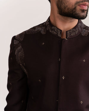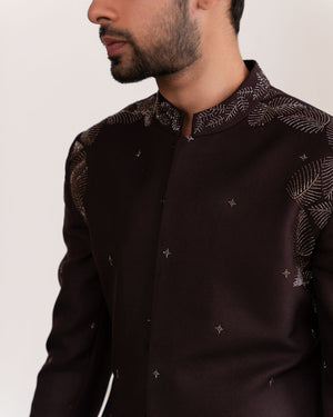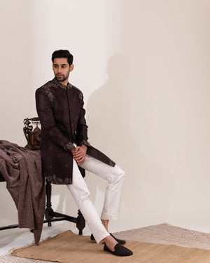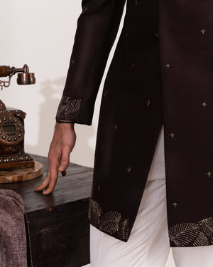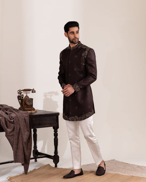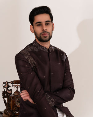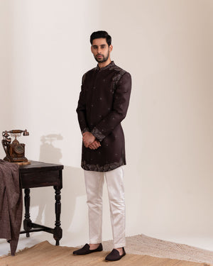 Dark Brown IndoWestern Bandhgala with Off white Pant