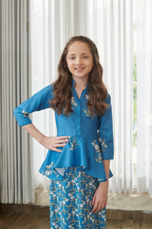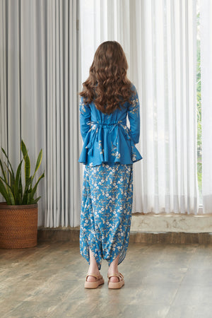 Indra Blue Peplum Dhoti Jumpsuit Kids