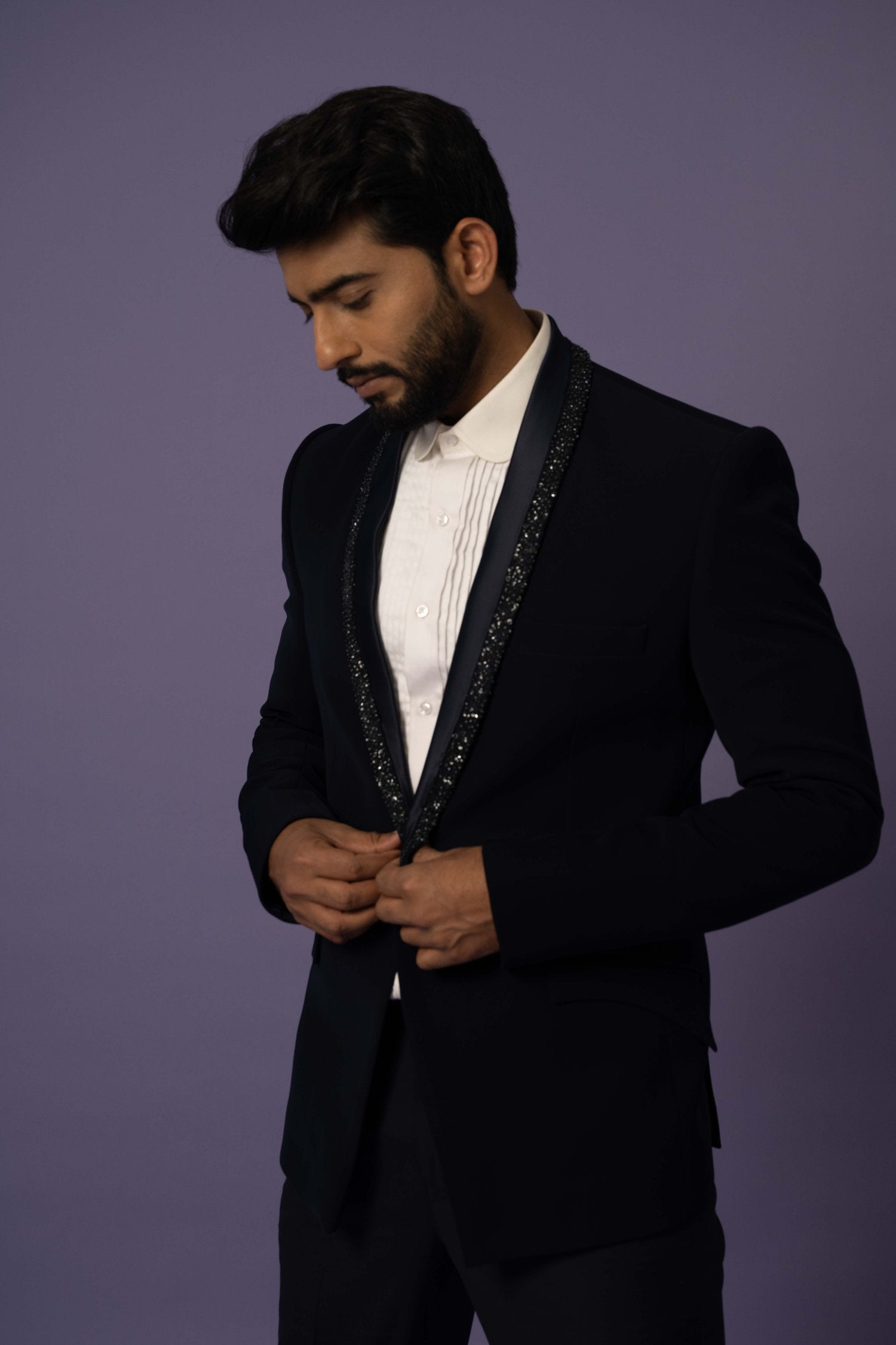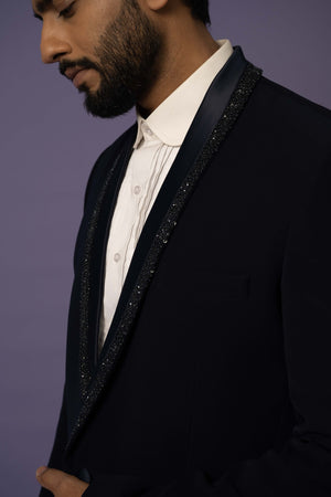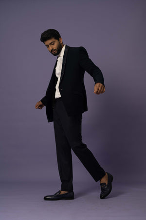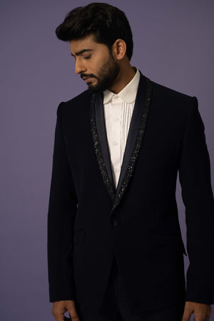 Featuring Set With An Embellished Lapel In Katdana,Chid & Sequins . It Is Paired With Black Trousers.