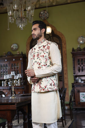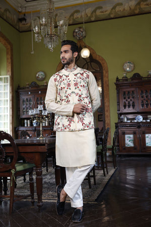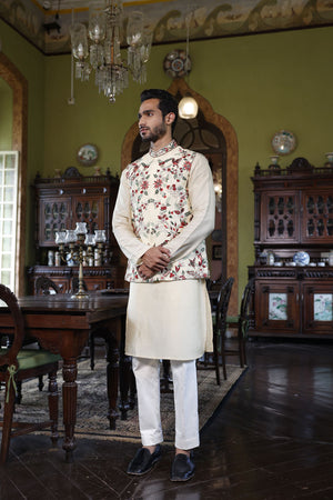 Ivory Abstract Floral Bundi with Kurta and Pant