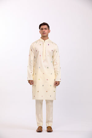 Cotton Viscose Kurta with Coloured Threads Hand Embroidery