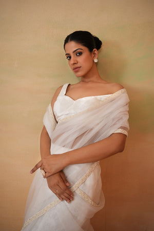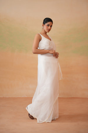 Ivory Blouse And Stitched Saree