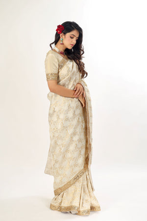 Bringing back the traditional of textile of Banaras the brocades and jacquards to amplify your look this festive/wedding season, engulf in this 6 yards of shear elegance of silk