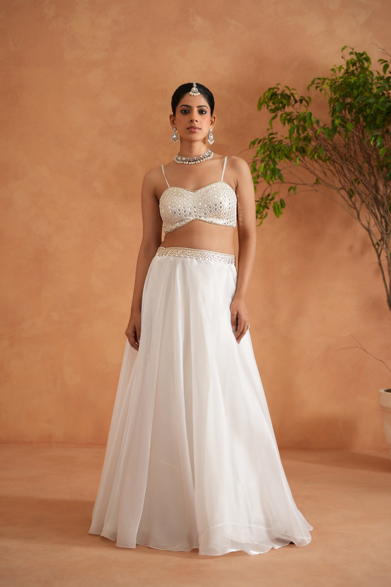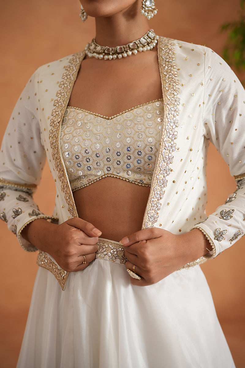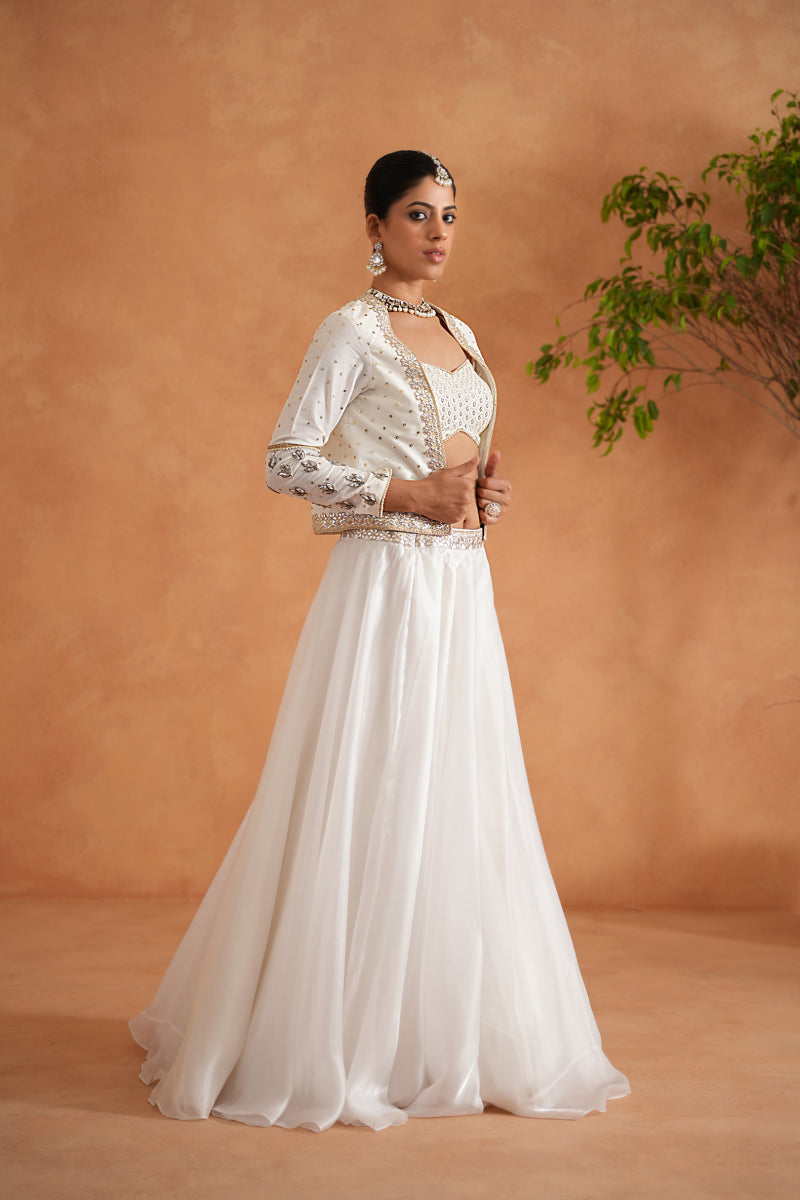 Ivory Embroidered Bustier, Lehenga And Short Jacket