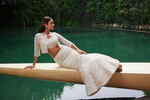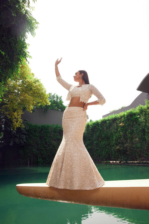 Ivory Fish Cut Lehenga With Cape Set