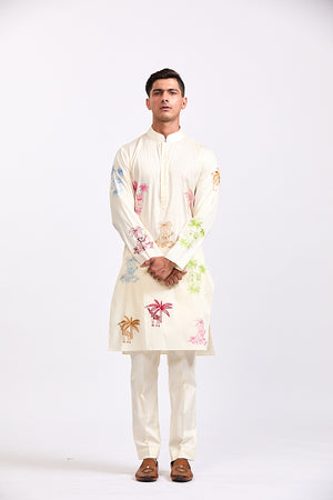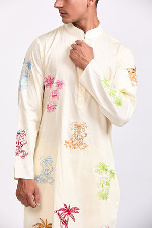 Ivory Giraffe & Cats Kurta Pant Set