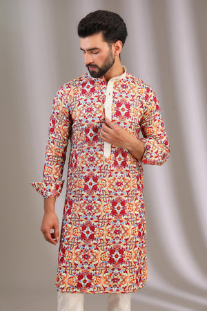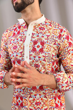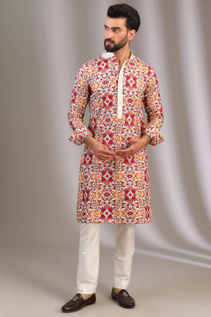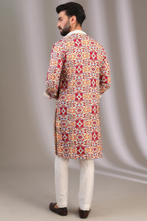 IVORY GORGETTE MULTI COLOR SILK THREAD JAAL UNLINED KURTA W COTTON SILK PANT