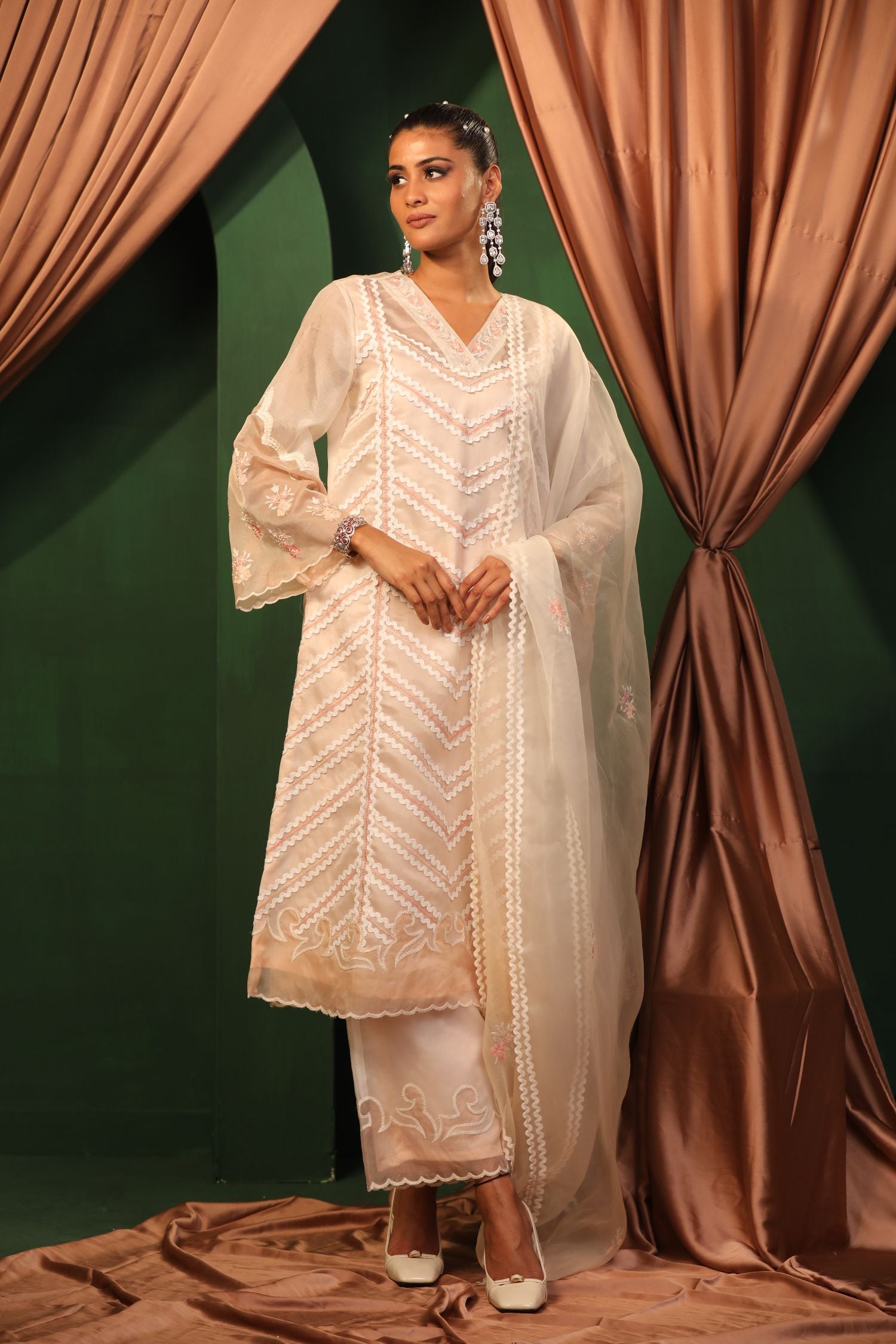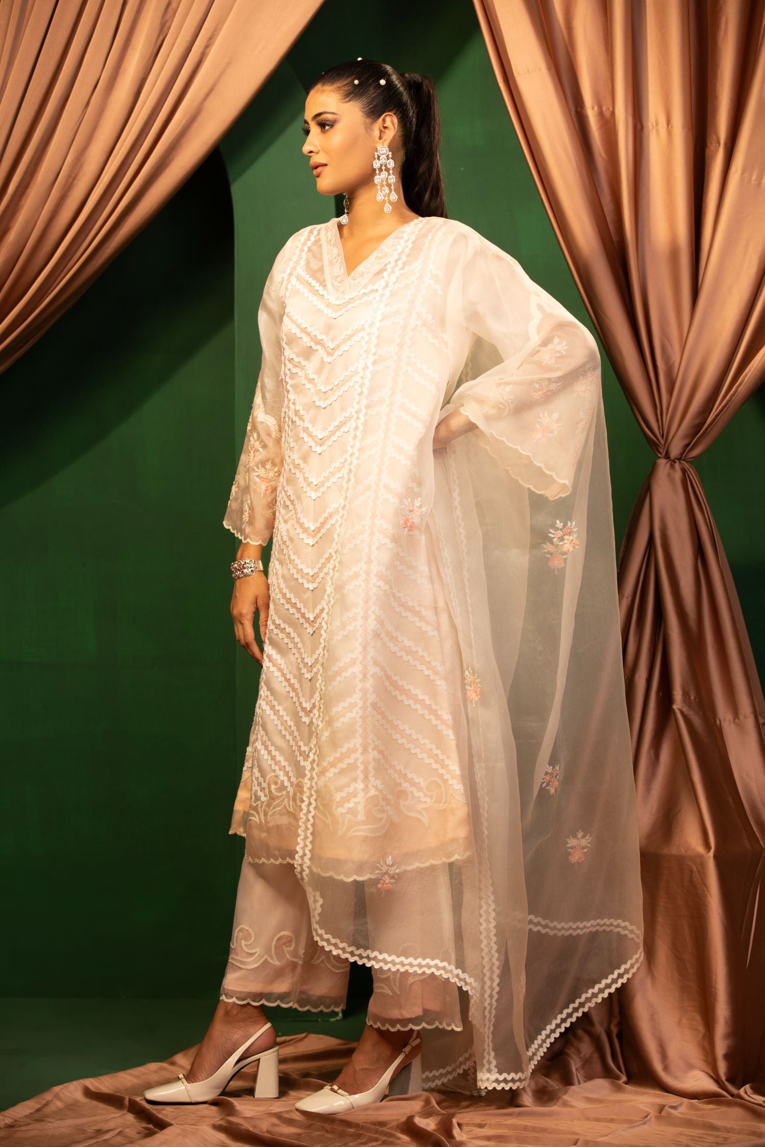 The Ivory Illusion dress is the epitome of sophistication. Its sheer overlay and intricate embroidery create a look that’s both ethereal and elegant. Perfect for weddings or any formal event.